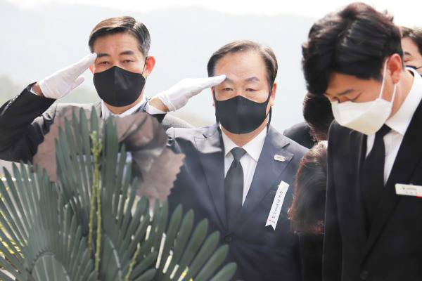 이날 추모행사에 참석한 국민의힘 국회의원, 당직자 전원은 전사자 묘역에서 희생용사 한명 한명을 호명하며 이들의 숭고한 희생정신을 기렸다.