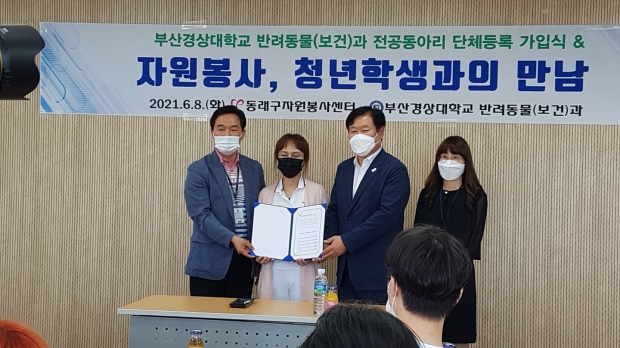 부산경상대 반려동물(보건)과 멍냥백서(펫푸드), 개고생(미용), 컴패니언(훈련), 감개무냥(봉사), 맵시멍(패션) 5개 전공동아리 활동실적 인정과 공식적인 봉사기관단체에 정식으로 가입식을 함으로서 부산경상대 반려동물(보건)과 전공동아리가 반려동물과 함께 행복한 공존사회를 만들어 가는데 지역사회와 함께 사회적 행동을 자원봉사활동으로 역할 수행을 하게 되었다. 또한 개인 1365봉사 실적 적립은 물론 봉사활동에 따라 동래구자원봉사지원센터 지원과 후원으로 더욱 활성화 계기가 되었다.