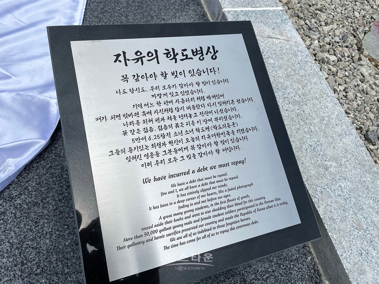 '자유의 호국 학도병상' 표지석.