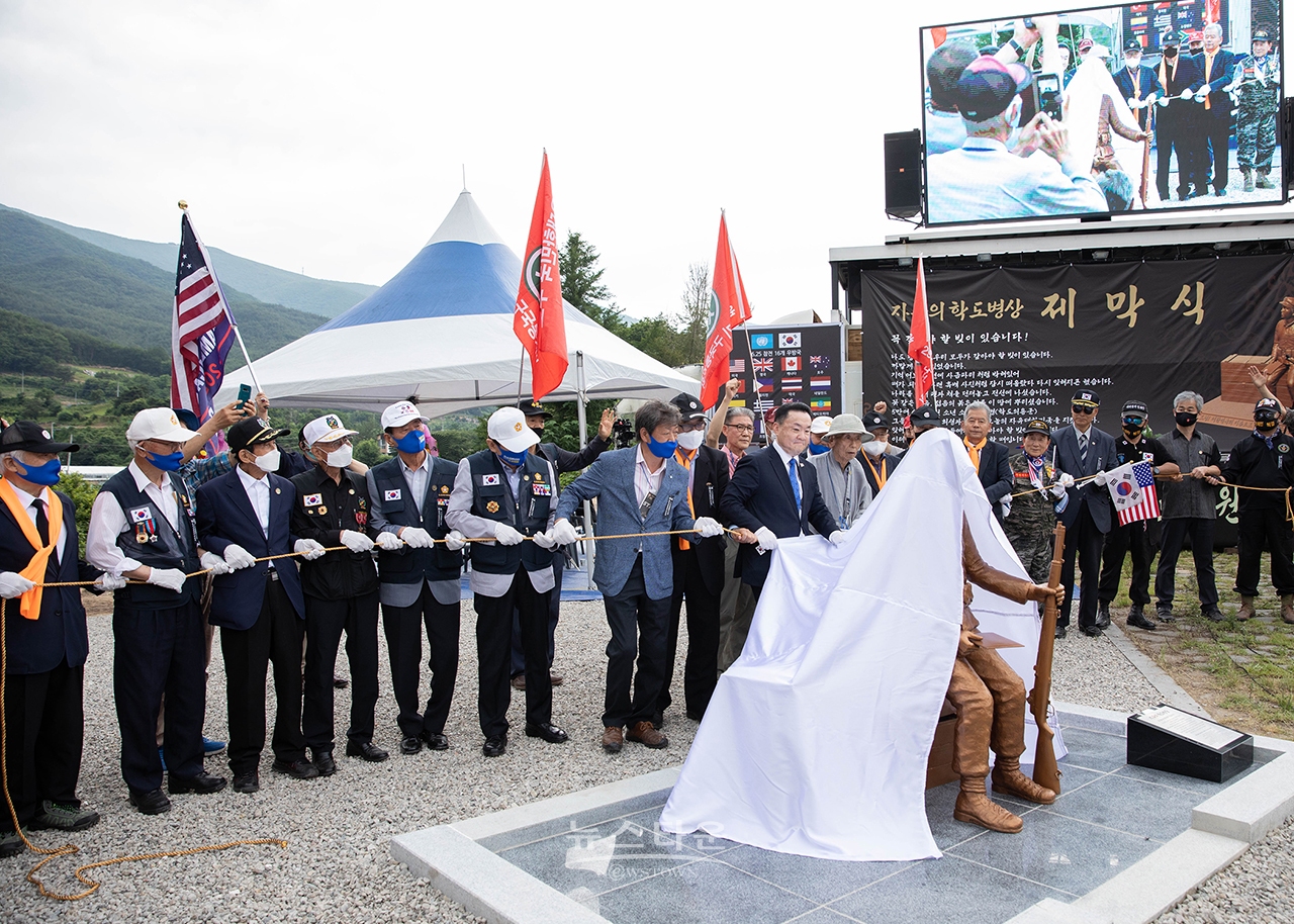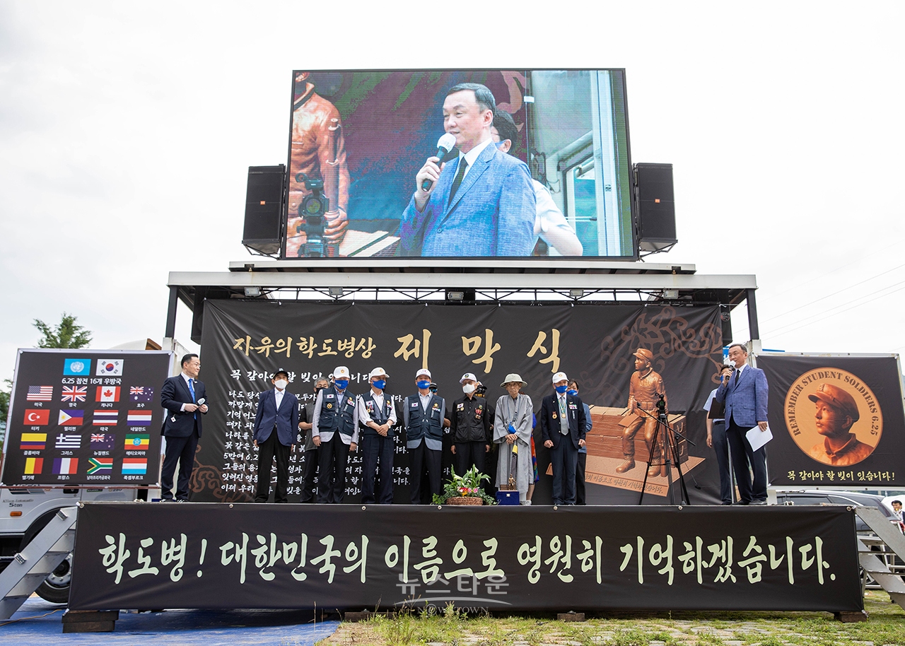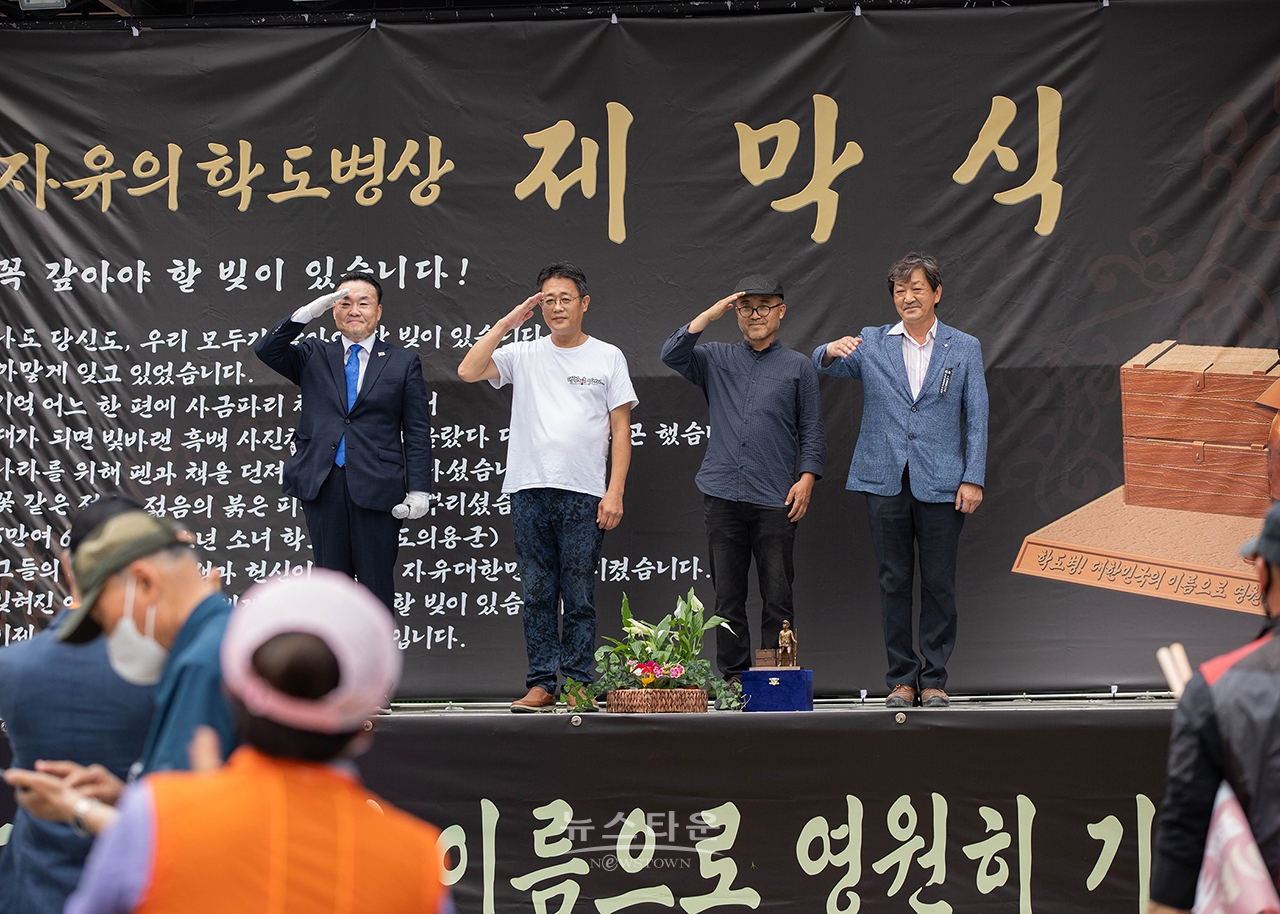 (주)뉴스타운 학도병기념사업회(회장 손상윤)는 지난 26일 오후 경북 영천 보현산 입구에서 '자유의 호국 학도병상' 제막식을 가졌다.