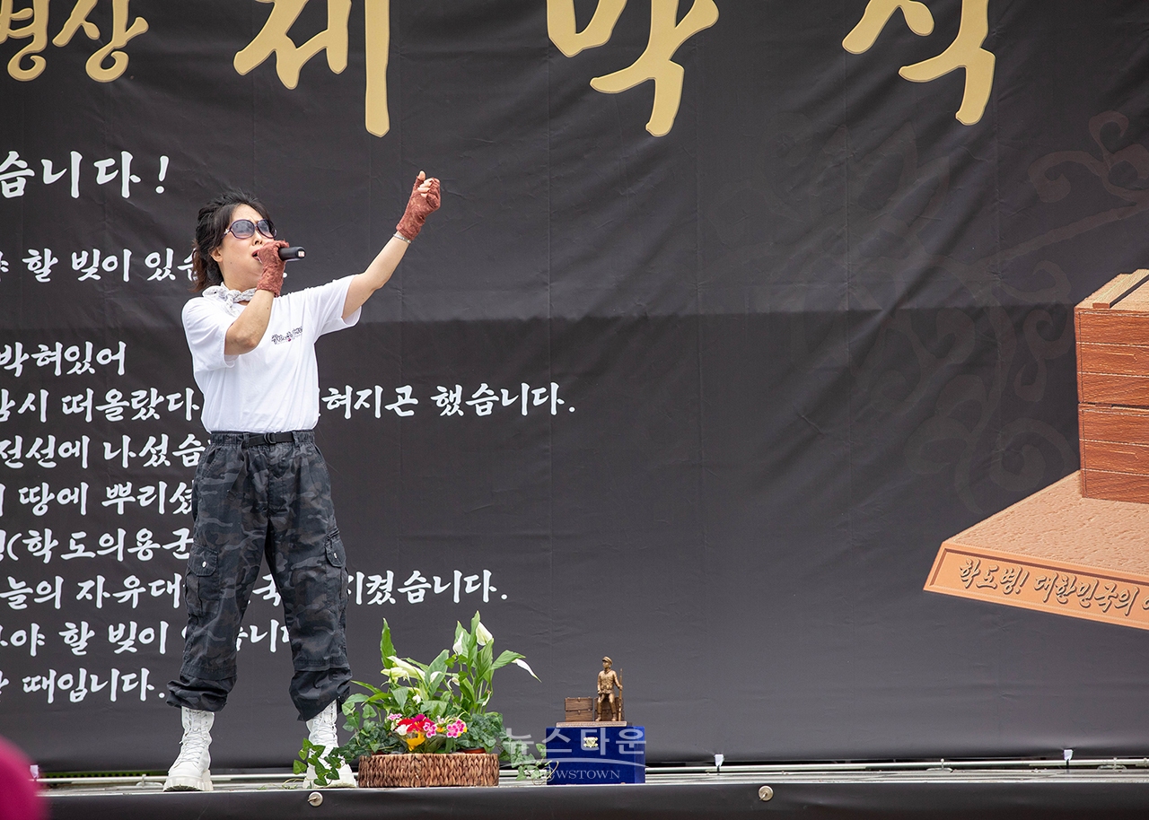'자유의 호국 학도병상' 제막식에서 축가를 불러 준 가수 김영선.