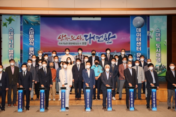 포항시는 1일 시청 대회의실에서 데이터산업을 주도하는 포항형 스마트시티 조성을 위한 추진동력을 확보하고 지난 4월 선정된 국토교통부 주관 ‘스마트시티 챌린지’ 공모사업의 성공적인 추진을 위해 ‘스마트시티 포항’ 비전 선포식을 개최했다.