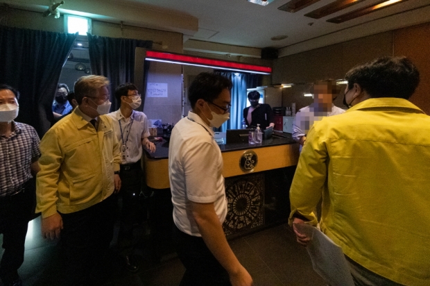 이재명 경기도지사가 직접 코로나19 방역수칙 위반 현장에 대한 긴급 단속에 나서 유흥주점에서 몰래 술을 마시던 위반사례를 적발했다.