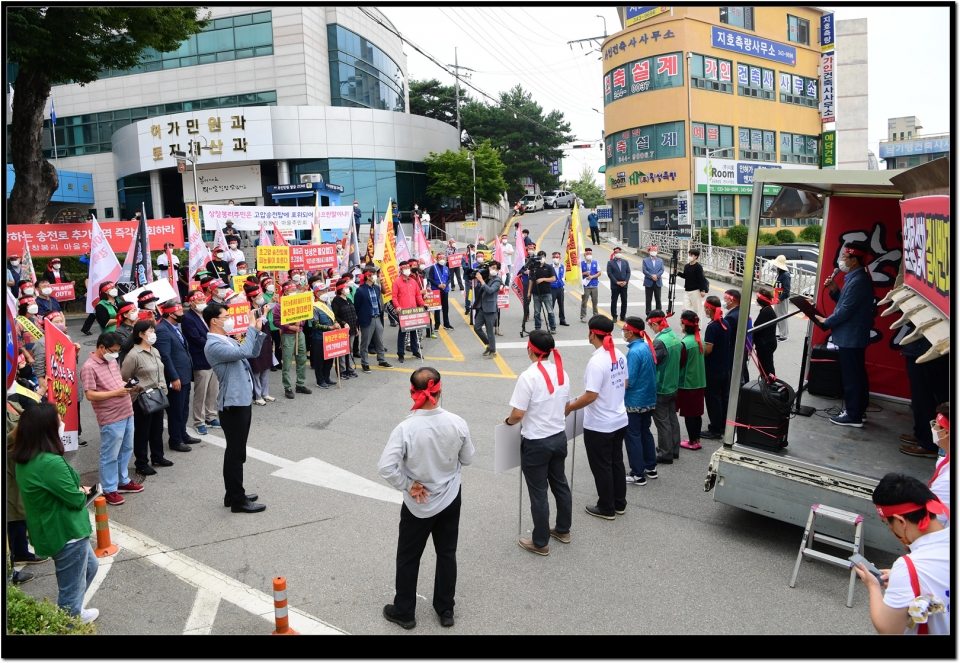 31 오전 횡성군청 허가민원과 앞에서 횡성군 송전탑반대대책위원회(위원장 차희수)가 주관한 500kv 송전탑 설치 반대집회가 열렸다.