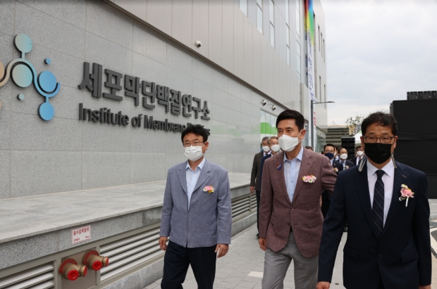 이날 준공식에는 이강덕 포항시장을 비롯해 이철우 경상북도지사, 정해종 포항시의회 의장, 김희수 경북도의회 부의장, 이창윤 과학기술정보통신부 기초원천연구정책관, 김무환 포스텍 총장 등 40여 명이 참석한 가운데 세포막단백질연구소 구축 경과보고를 시작으로 감사패 전달, 준공퍼포먼스, 현장투어 등의 순으로 진행됐다.