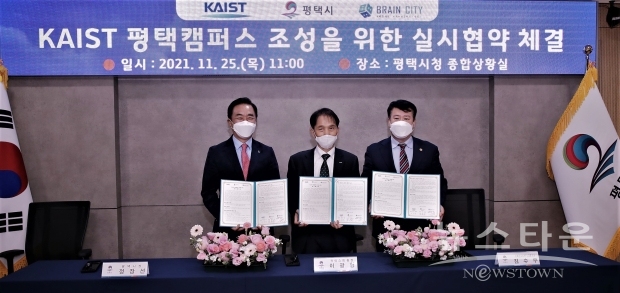 경기 평택시는 카이스트(이하 KAIST) 및 브레인시티프로젝트금융투자(주)(이하 브레인시티PFV)와 KAIST 평택캠퍼스 조성을 위한 실시협약을 체결했다고 25일 밝혔다.