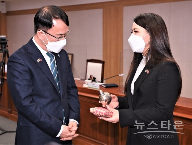 지난해 9월 부임한 찌릉 보톰랑세이(Chring Botumrangsay) 주한캄보디아 대사가 22일 취임인사 차 수원시청을 방문해 조청식 수원시장 권한대행을 만났다.