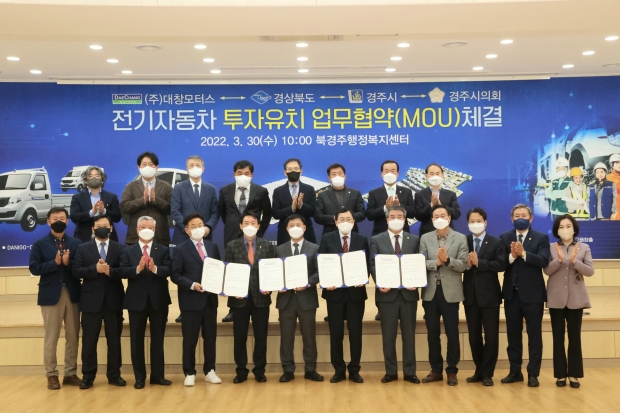 경주시와 경북도는 30일 전기차 전문기업 ㈜대창모터스와 상업용 전기차 및 배터리팩 생산시설 구축을 골자로 한 투자양해각서(MOU)를 체결했다.