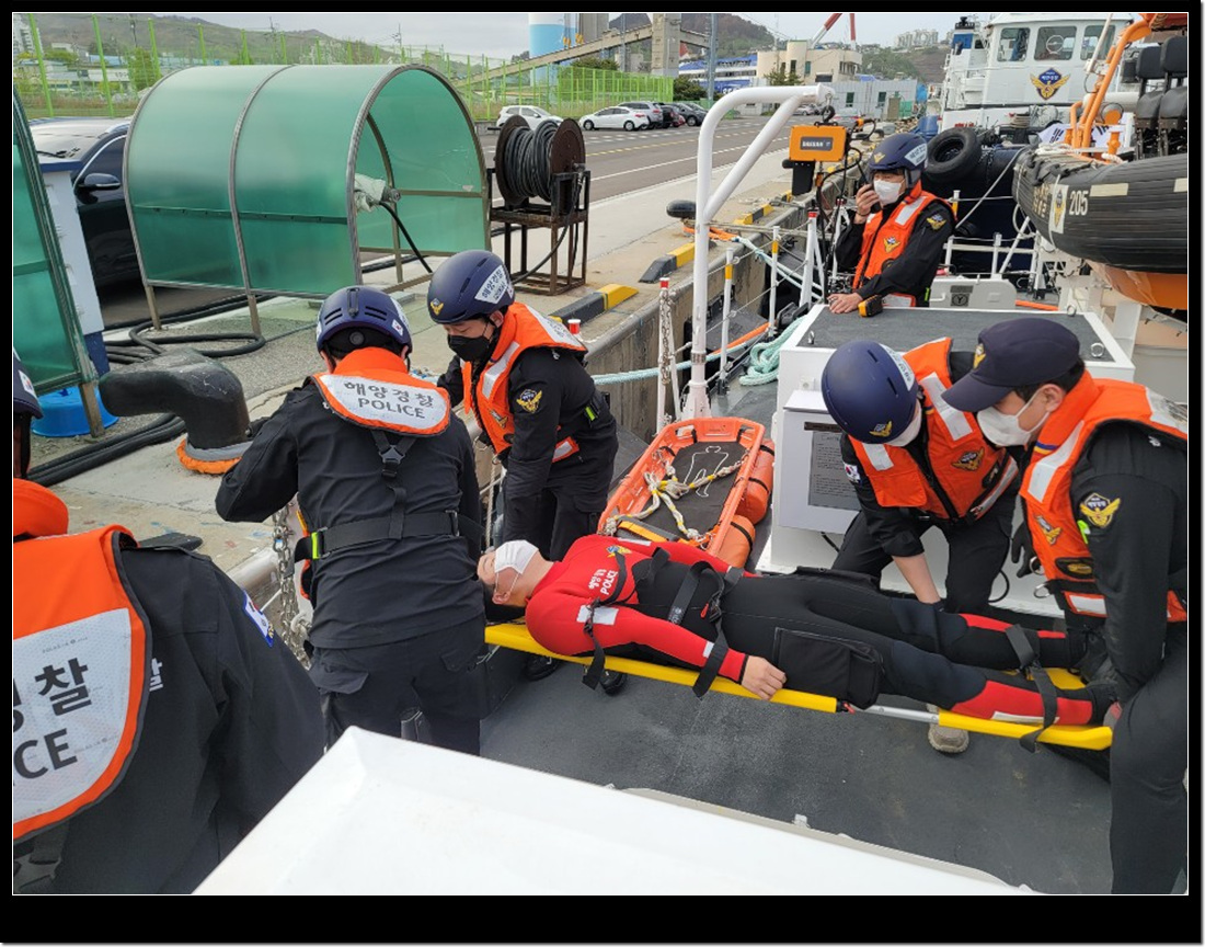 동해해양경찰서는 27일 묵호항 해양경찰 전용부두에서 신조함정 205정 현장대응 역량 및 직무 능력 강화를 위해 교육·훈련을 실시했다.