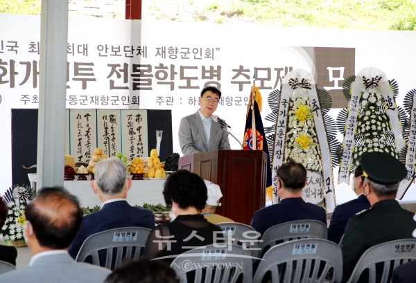 하승철 군수는 추도사에서 “군복 대신 교복을 입고, 철모 대신 교모를 쓴 채 펜 대신 총을 들었던 소년병의 애국심과 영웅다운 죽음을 통한 희생을 기억하며 대한민국에서 두 번 다시 6·25전쟁과 같은 동족상잔의 비극이 발생하지 않도록 안보의식을 높여나가야 할 것”이라고 밝혔다.
