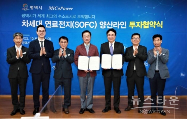 경기 평택시는 6일 (주)미코파워와 수소산업의 핵심인 차세대 수소연료전지(SOFC) 양산라인 투자협약을 체결했다고 밝혔다.