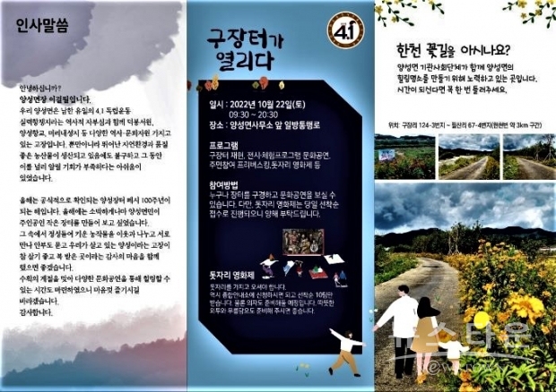 경기 안성시 양성면은 오는 22일 오전 9시 30분부터 양성면사무소와 면사무소 앞 도로에서 '다시 쓰는 양성 100년' 문화장터를 연다고 13일 밝혔다.