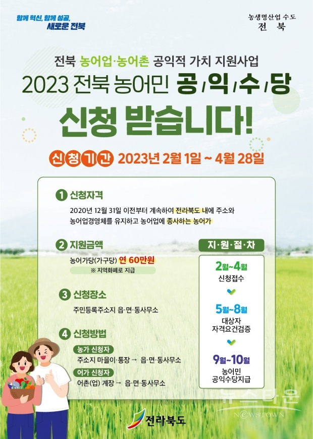 정읍시가 농어업·농어촌의 공익적 가치를 인정하고 농업인의 삶의 질 향상을 도모하기 위해 농어민 공익수당을 지급한다.