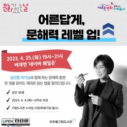 미추홀구 구립도서관은 오는 25일 ‘4월 문화가 있는 날’ 주간을 맞아 김선영 작가를 초청해 ‘어른답게, 문해력 레벨 업’ 특강을 운영한다.