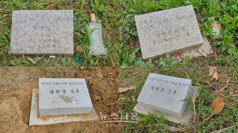 실제 북한군 묘역 현장을 취재해 보니, 제2묘역에는 여전히 중공군 묘지 몇 구가 남아있는데, 실제 유해는 중국으로 송환되었고 비석은 철거되지 않고 남아있어 의도가 매우 불순해 보였다. 제2묘역 상층부에는 2021년, 2022년에 제작된 비석이 깔끔하게 조성되어 있고, 바로 옆에는 말뚝까지 설치하여 북한군 유해를 추가 안장할 계획으로 보인다.