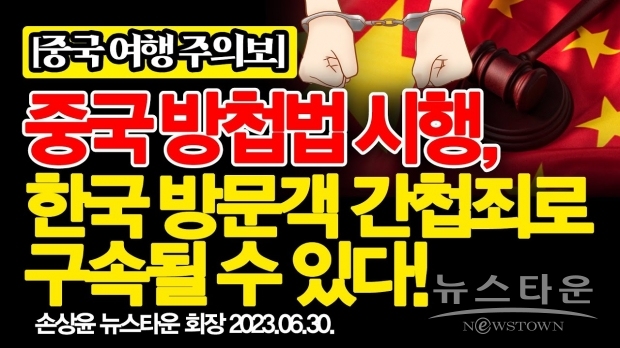 30일 오후 손상윤 뉴스타운 회장은 "중국 방첩법 시행, 한국 방문객 지도 사진 통계 검색 간첩죄로 구속될 수 있다!"라는 제목으로 자유미래TV에서 실시간 생방송을 진행했다.