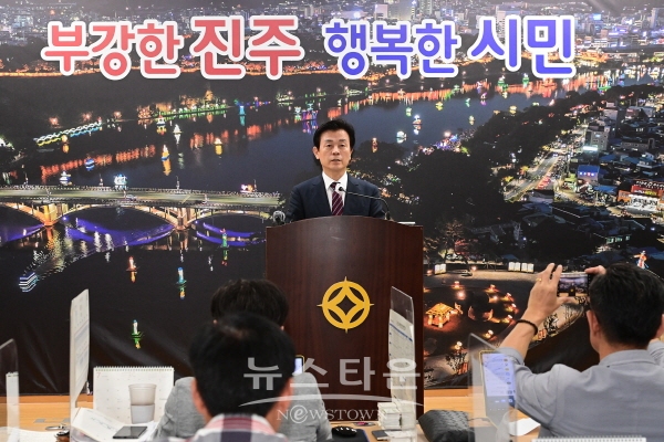 조규일 진주시장이 3일 시청 브리핑룸에서 민선 8기 취임 1주년 기자회견을 열고, 지난 1년 동안의 소회와 앞으로의 계획을 밝혔다.