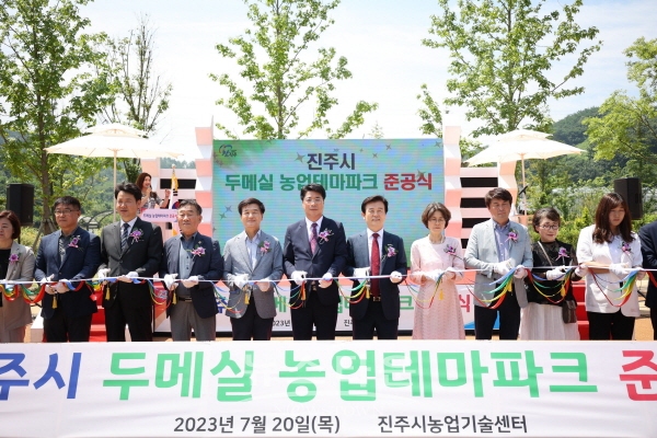 진주시는 20일 농업기술센터 다목적광장에서 두메실농업테마파크 준공식을 개최했다.