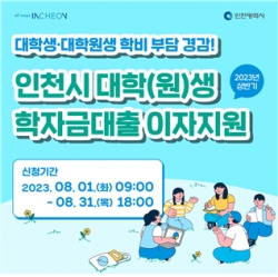 인천시, 대학(원)생 학자금대출 이자 지원 … 8월 1일부터 접수