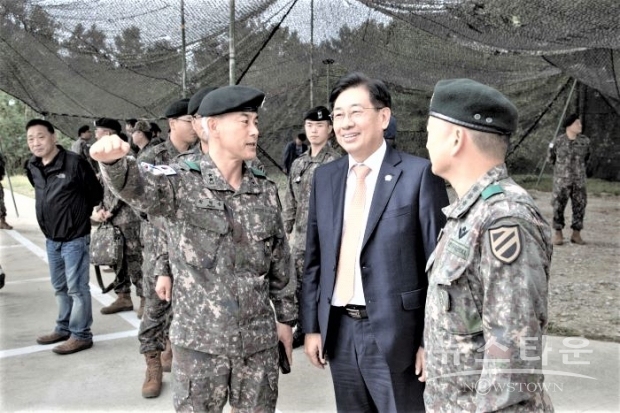 지난 22일 육군 11기동사단 결전여단 부대개방행사에서 권혁동 사단장(소장)과 전진선 군수와 김현규 여단장이 함께하고 있다.(왼쪽부터 권혁동 사단장, 전진선 군수, 김현규 여단장 순) /양평군