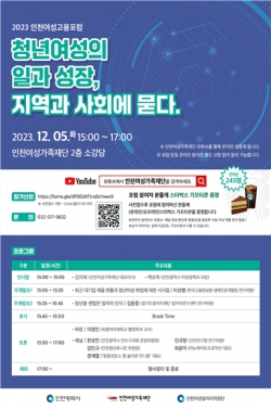 인천여성가족재단이 오는 12월 5일(오후 3시) 재단 소강당에서 ‘2023 인천여성고용포럼’을 개최한다.