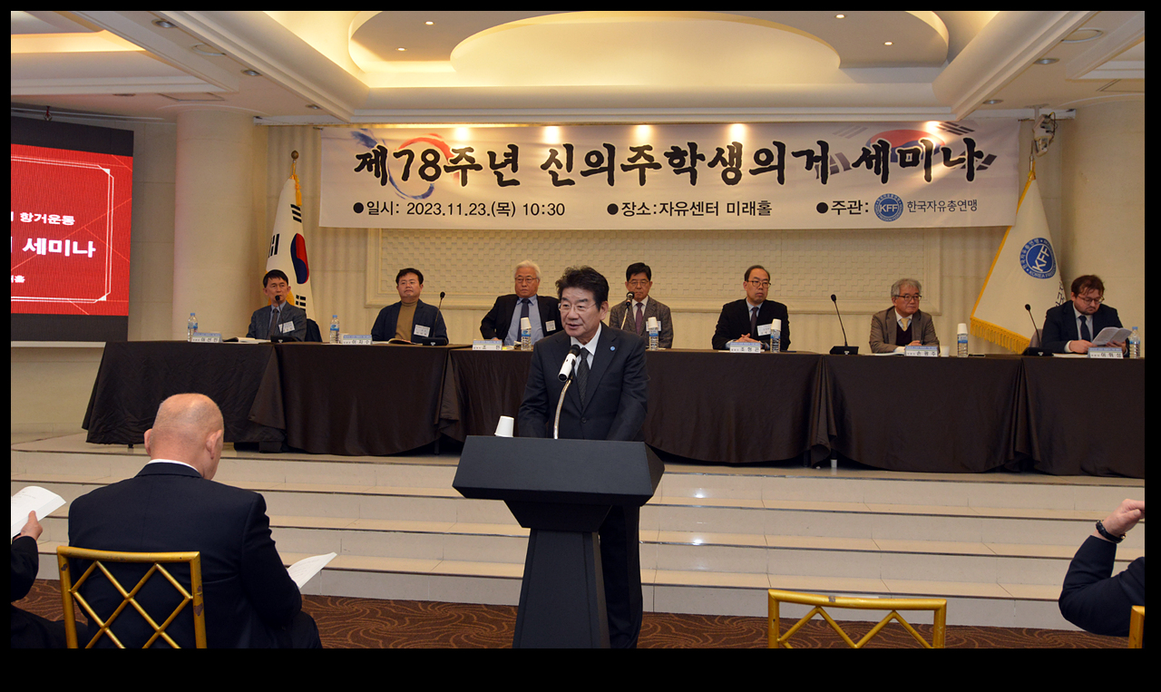 한국자유총연맹(이하 연맹)은 23일, 서울 남산 자유센터에서 78주년을 맞은 신의주학생의거를 기리는 기념식과 세미나를 개최했다.