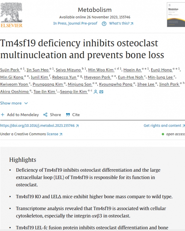 이번 연구결과는 세계적인 국제학술지 ‘Metabolism:Clinical and Experimental,’(대사)(IF : 9.8)에 게재됐다. 이 학술지는 내분비대사 분야에서 세계에서 4번째로 손꼽히는 국제학술지이다.