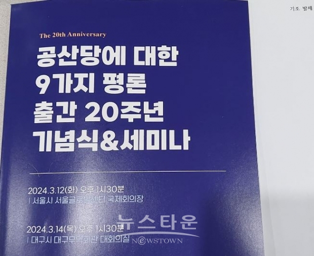 어제(3월 14일) 대구무역회관에서 개최된 중공 비판서로 알려진 '9평공산당' 출판기념 국제세미나에 참석하고 마침내 빛과 동지를 만난 느낌이었다. 어린시절 빨치산의 흔적이 강한 지리산 자락에서  보낸 필자는 공산당과 이북(김일성)에 대한 의혹이 남달랐다. 결국 중고등학생 시절에도 '지리산(이병주)', '태백산맥(조정래)',  남부군 등을 읽는 등 6.25에 관한 관심이 많았다.