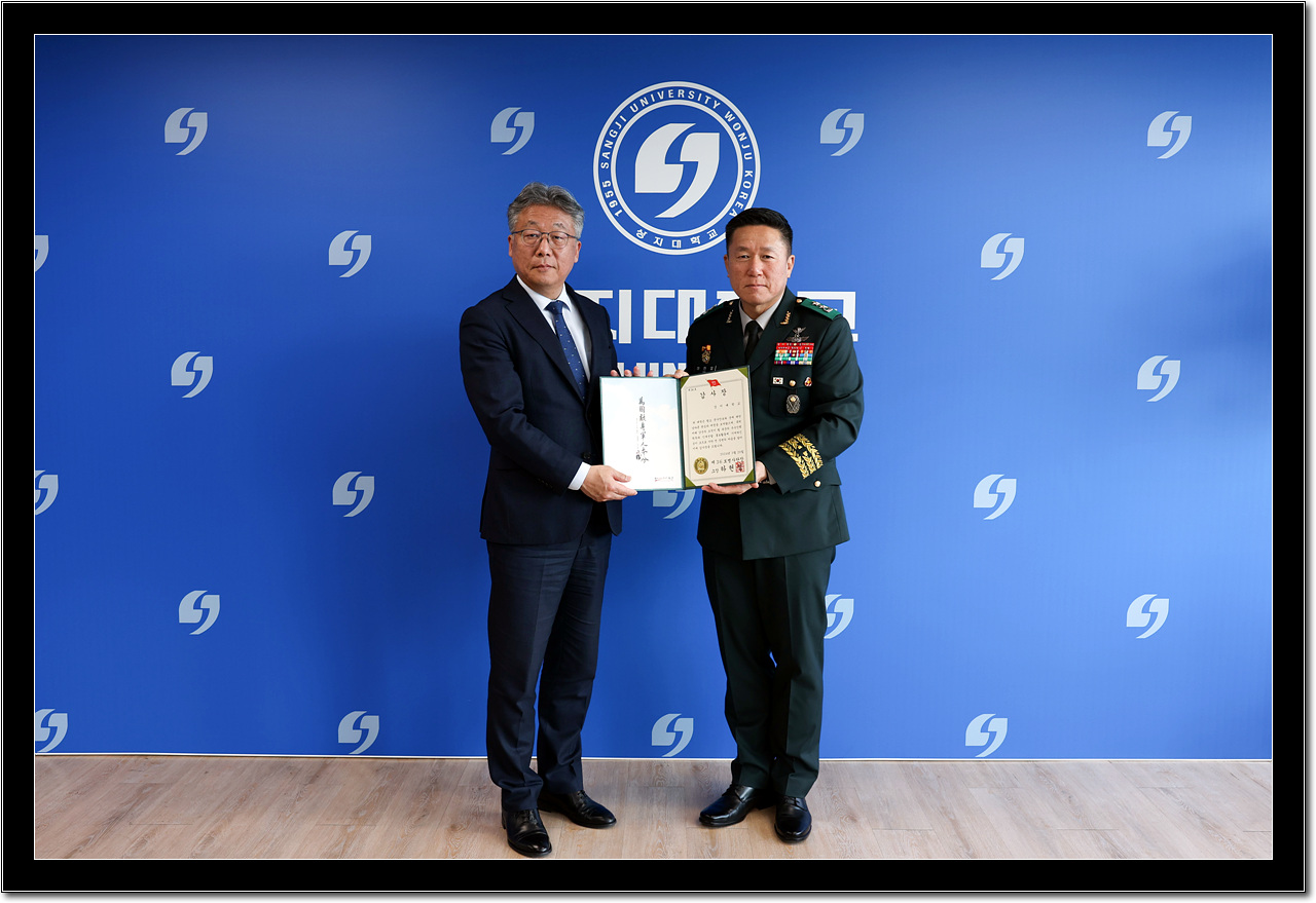 특강에 앞서 육군 제36보병사단은 지역사회 발전에 선도적인 지역대학으로서 학-군 발전 등에 기여한 상지대학교에 사단장 명의로 감사장을 전달했다.