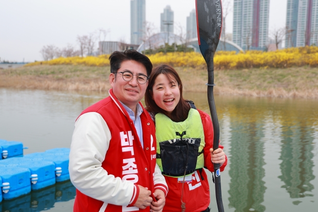 생애 처음으로 카약을 탄 박 후보는 “처음이라 조금 무서웠지만 청라국제도시가 수상레저도시라는 걸 실감했다. 국제적인 수상레저도시로 관광객들이 넘치는 도시로 만들고 싶다”고 소감을 말했다.