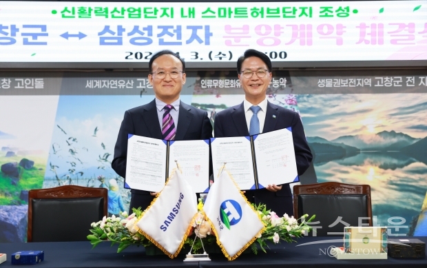 고창군이 지난 3일 군청 회의실에서 삼성전자㈜와 ‘스마트허브단지(삼성전자 호남권 물류거점 가칭) 조성사업 분양계약’을 체결했다.