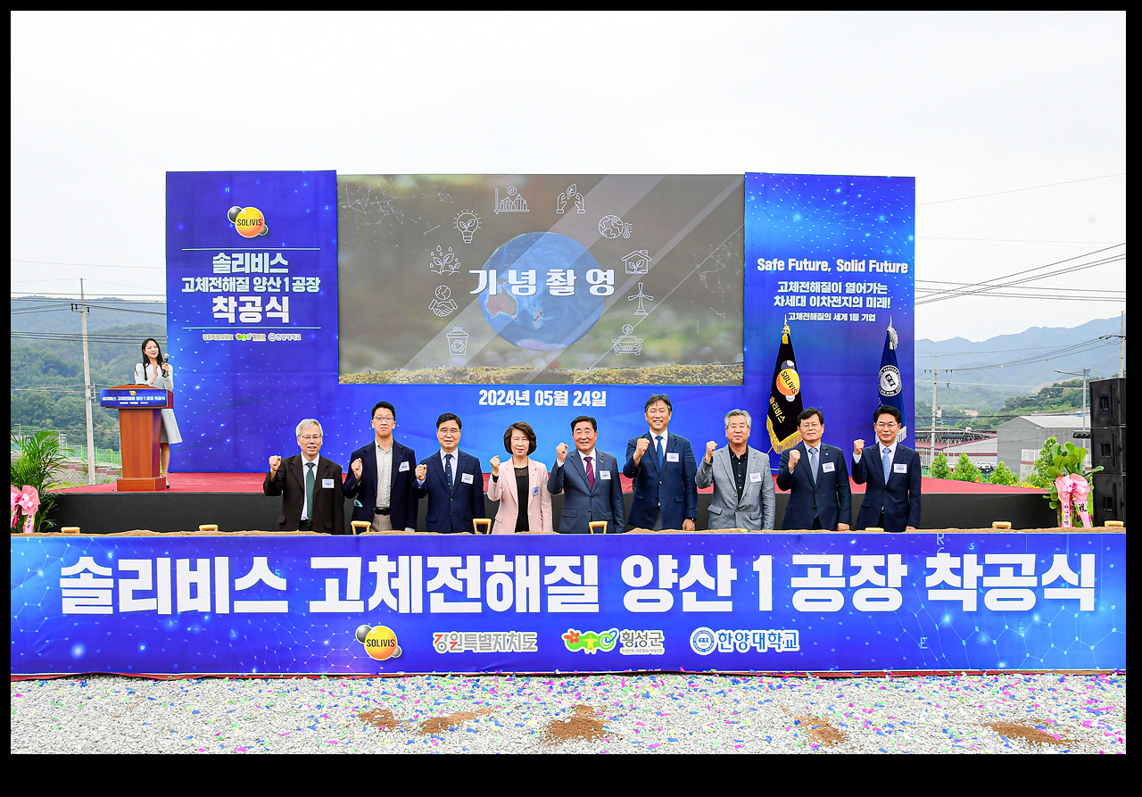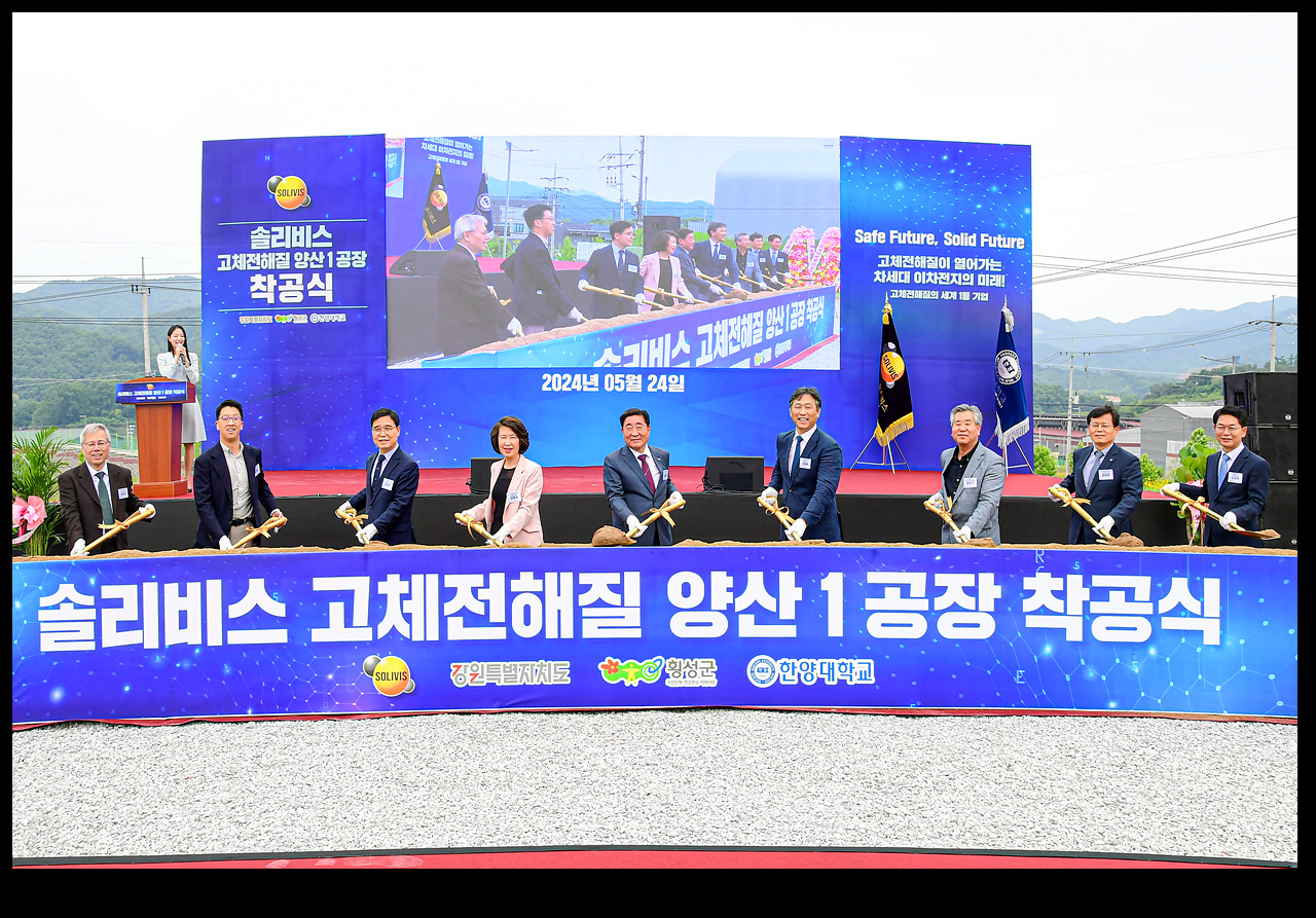 횡성군은 전고체배터리 고체전해질 분야 세계 최고 기술력을 보유한 ㈜솔리비스(대표 신동욱)가 5월 24일 우천 일반산업단지에서 최첨단 양산공장 착공식을 개최하고 본격적인 건립에 나선다고 밝혔다.