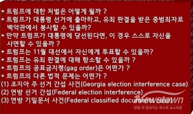 트럼프 팀이 항소를 제출하면 머천 판사가 선거일 이후에도 항소 절차가 진행될 때까지 트럼프 형을 유예할지, 아니면 일시 중지할지 지켜볼 일이다.