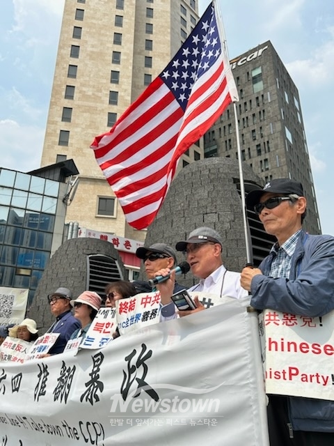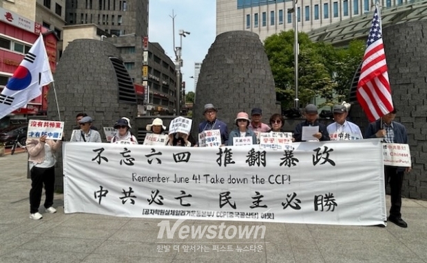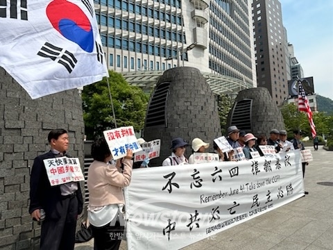 시민단체 'CCP(중국공산당)아웃'(이하 ‘중공아웃’)과 '공자학원 실체알리기 운동본부'(이하 ‘공실본’)는 이날 중국대사관 앞에서 기자회견을 열고 "1989년 6월 4일, “자유가 아니면 죽음을!”, “모든 권력은 인민의 것이다”라고 외치며 베이징 천안문광장을 가득 메운 중국인들을 향해 중공군은 자기 국민들에게 무차별 난사를 퍼부었고, 수많은 사람들을 탱크로 깔아뭉갰다. 수만 명이 죽었다고 하지만, 아무도 그 숫자를 모른다"며 "그로부터 35년이 흐른 오늘까지, 중국공산당은 천안문학살의 진실을 파묻고자 발악을 하고 있다. 6월 4일을 기억하자는 말을 했다는 이유만으로 사람들을 체포해 감옥에 가둔다"고 비판했다.