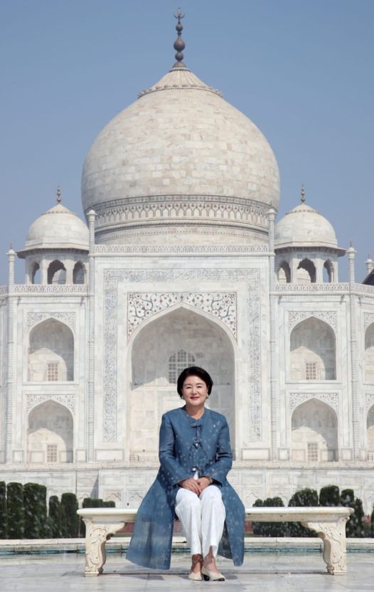 문 전 대통령은 "아내의 인도 순방은 아내가 원한 것이 아니라며, 세상에 어느 아내가 외교나 외국인을 만나는 일에 익숙하지도 않은 터에 멀고 먼 낯선 나라 낯선 지역의 낯선 행사에 주빈으로 참석하여 군중 앞에서 축사까지 해야하는 일정을 대통령인 남편 없이 혼자서 수행하고 싶겠냐"라고 반박했다.