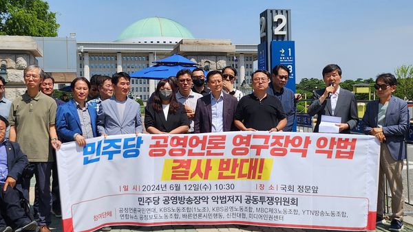민주당과 언론노조의 공영방송 영구장악 입법을 저지하기 위한 공동투쟁위원회가 12일 발족됐다.