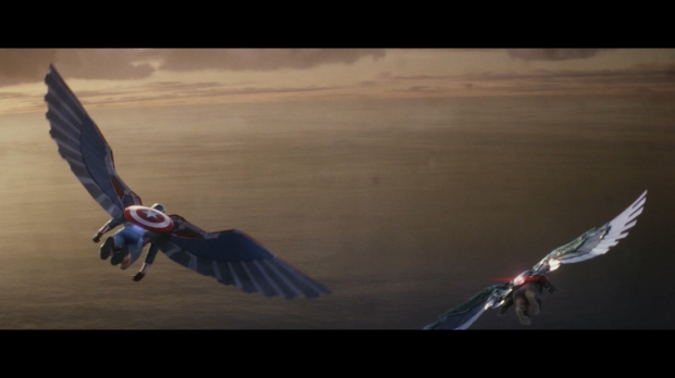 특히 팔콘이던 시절부터 시그니처로 선보이던 날개를 펼치며 바다 위를 가로지르는 활강 액션과 스피디한 고공 전투, 여기에 비브라늄 방패까지 더해지며 보기만 해도 숨을 멎게 만드는 속도감과 스케일로 쾌감을 전한다.