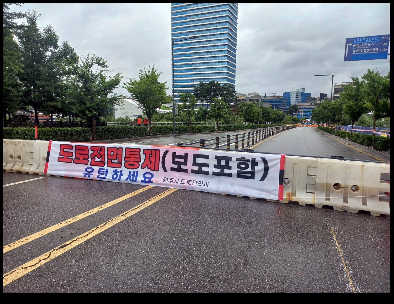 원강수 원주시장은 “도로와 보도, 산책로 전면 통제에 따라 통행 불편에 시민분들의 양해를 부탁드리며, 장마철 법면부 추가 유실로 인한 교통사고 및 안전사고 방지를 위하여 우회도로 이용을 당부드린다”고 전했다.