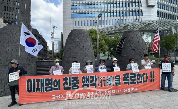 시민단체 'CCP(중국공산당)아웃'(이하 ‘중공아웃’)과 '공자학원 실체알리기 운동본부'(이하 ‘공실본’)는 7일 중국대사관 앞에서 기자회견을 열고 더불어민주당에 ‘간첩 소굴이냐’고 공개 질의를 던졌다. 외국의 간첩을 단속할 수 없는 현행 형법과 군형법의 문제점을 개선하기 위한 법률 개정안을 민주당이 반대하고 있기 때문이다.