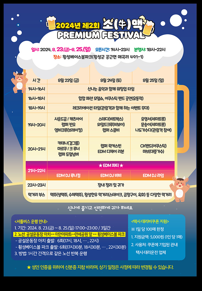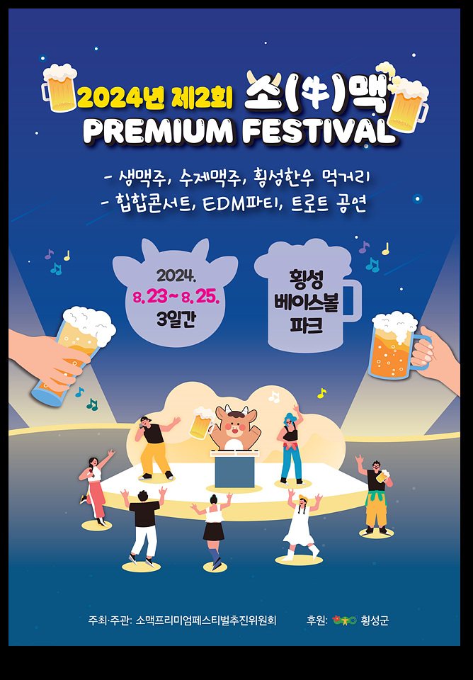 제2회 소(牛)맥프리미엄페스티벌이 오는 23일부터 25일까지 3일간 횡성베이스볼파크 축구장에서 개최된다.