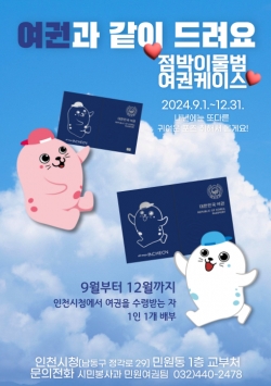이에 시는 천연기념물 ‘점박이물범’ 캐릭터와 슬로건(all ways incheon)을 여권 케이스 뒷면에 디자인하여 물범의 귀여운 매력과 함께 시 브랜드 가치를 널리 알리고자 한다. 이번 제작은 한시적 사업으로 그치지 않고, 점박이물범 캐릭터 응용으로 매년 다른 디자인의 여권 케이스를 제작하여 연중 배부될 수 있도록 할 예정이다.