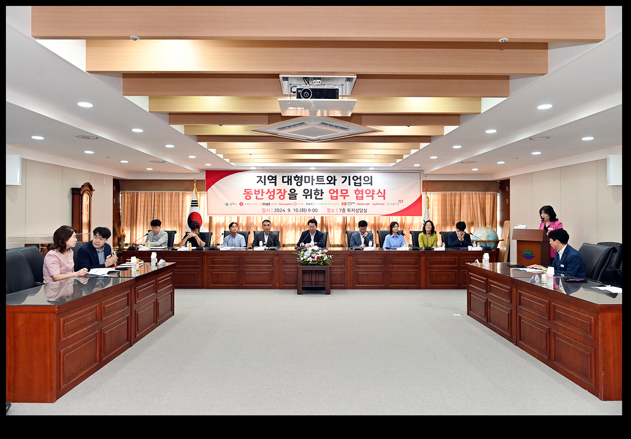 원주시는 10일 오전 9시 시청 7층 투자상담실에서 ‘지역 대형마트와 기업의 동반성장을 위한 상생 업무 협약’을 체결했다.