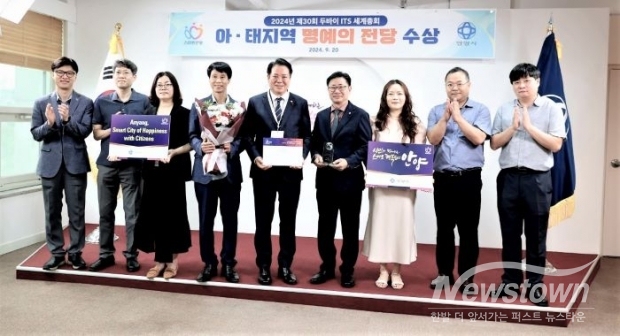 안양시가 지난 17일 오전 9시(현지시간) 아랍에미리트에서 열린 ‘제30회 두바이 지능형교통체계(ITS) 세계총회’에서 ‘지능형교통체계(ITS) 명예의 전당 아시아·태평양 지역 지자체 부문 공로상’을 받았다.