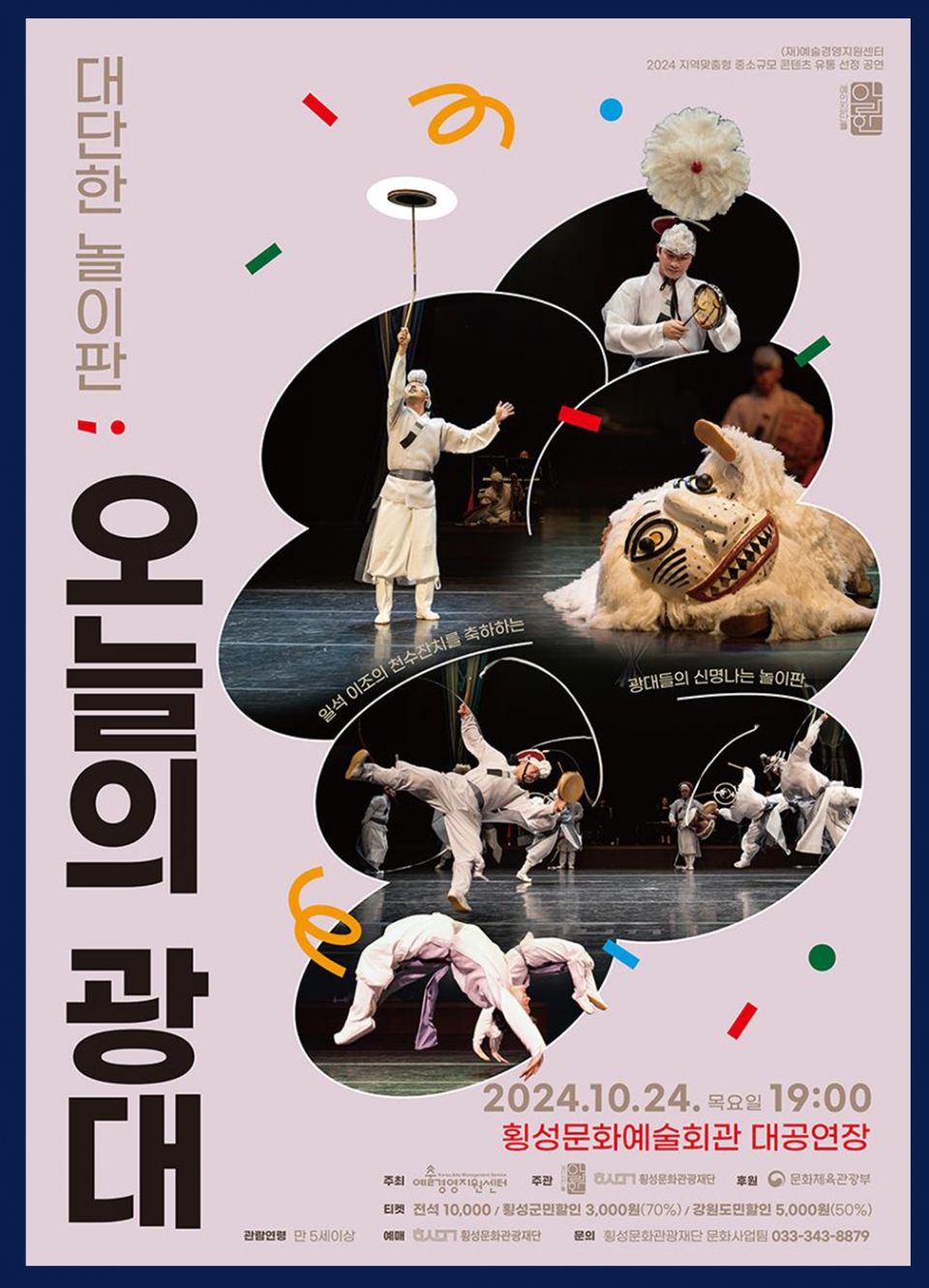 (재)횡성문화관광재단은 오는 10월 24일 오후 7시 횡성문화예술회관 대공연장에서 ‘대단한 놀이판: 오늘의 광대’기획공연을 선보인다.
