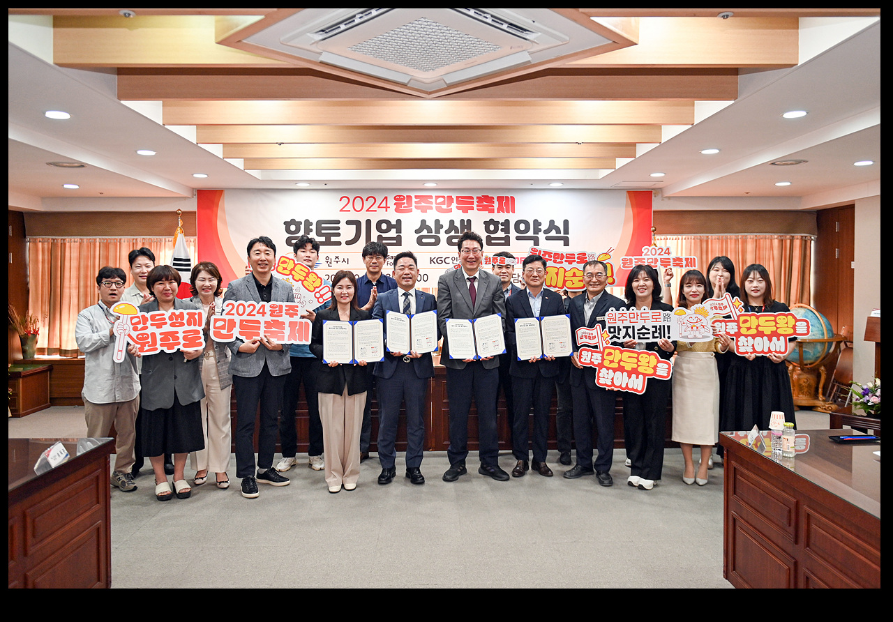 원주시는 9월 30일(월) 오전 10시 시청 7층 투자상담실에서 삼양식품, KGC 인삼공사, 네오플램 등 향토기업 3곳과 ‘2024 원주만두축제 상생 업무협약’을 체결했다.