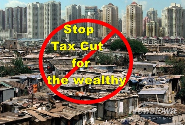 부자를 위한 세금 감면은 경제적 혜택을 약속하지만, 지속적으로 더 깊은 경제적 불평등과 분열 외에는 아무것도 제공하지 못한다. 대표적인 사례로는 이른바 ‘낙수효과’(Trickle Down Effect)라는 것이다. ‘낙수효과’란 고소득층의 수입이 증가하면, 이것이 자연스럽게 저소득층에게도 이어진다는 이론을 말이다.