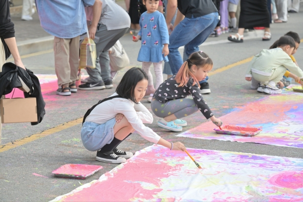 도로에 자유롭게 그림을 그리는 드로잉존, 버려진 물건을 재탄생시키는 업사이클링존, 아이와 어른이 함께 골프를 즐기는 액티비티존은 도로 위를 동심으로 가득 채웠다.
