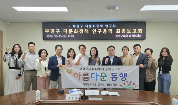 부평구의회 의원연구단체인 부평구 다문화 정책 연구회 '아름다운 동행'은 12일 부평구의회 2층 의정회의실에서 부평구 다문화 정책 연구를 과업으로 하는 연구용역 최종결과를 보고 받았다.