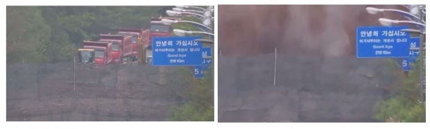 이런 미묘한 상황에서 북한정권은 한국의 대북 확성기 방송재개 등으로 체제 이반의 위기를 느껴 지난해 11월 경의선 도로 인근에 나뭇잎 지뢰를 살포했고, 12월에는 동해선에 지뢰를, 올해 3월에는 동해선 도로 펜스 제거, 4월에는 경의선 도로 가로등 철거 등을 거쳐 10월 14일에는 1천800억 원이 투입된 경의선·동해선 남북 연결도로 폭파로 마지막 남은 ‘남북경협의 상징’이 사라지게 돼, 북한이 주장하는 평양 무인기 침투 사건 등 일련의 상황을 감안하면 남북관계는 걷잡을 수 없이 악화하는 형국이다.