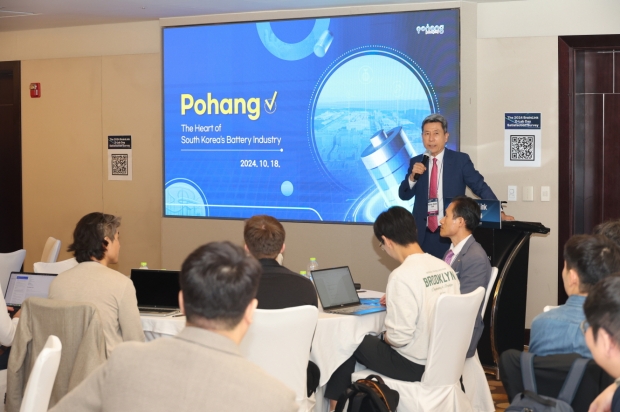 이강덕 포항시장이 ‘2024 브레인 링크(Brain Link) 기술교류회’에 참석한 국내외 이차전지 석학들에게 포항의 이차전지 산업의 성과를 알리는 특강을 진행했다.